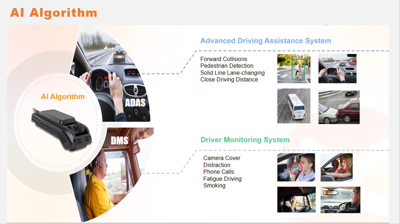 Most accidents (roughly 90%) result from human error, especially distractions. Using artificial intelligence, dashcams register distractions such as texting or smoking. The dashcam then notifies drivers with audio-visual alerts, empowering them to adjust their driving behaviour in real time.